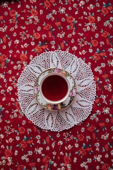 Understanding these symbols is crucial. Charts often show the direction of work, with rows or rounds progressing from bottom to top or center outwards. Pay attention to color changes or shading, which indicate different stitch variations or pattern repeats. Learning to ‘read’ a chart unlocks a world of intricate doily designs, allowing you to confidently tackle free patterns and create beautiful, delicate pieces.
